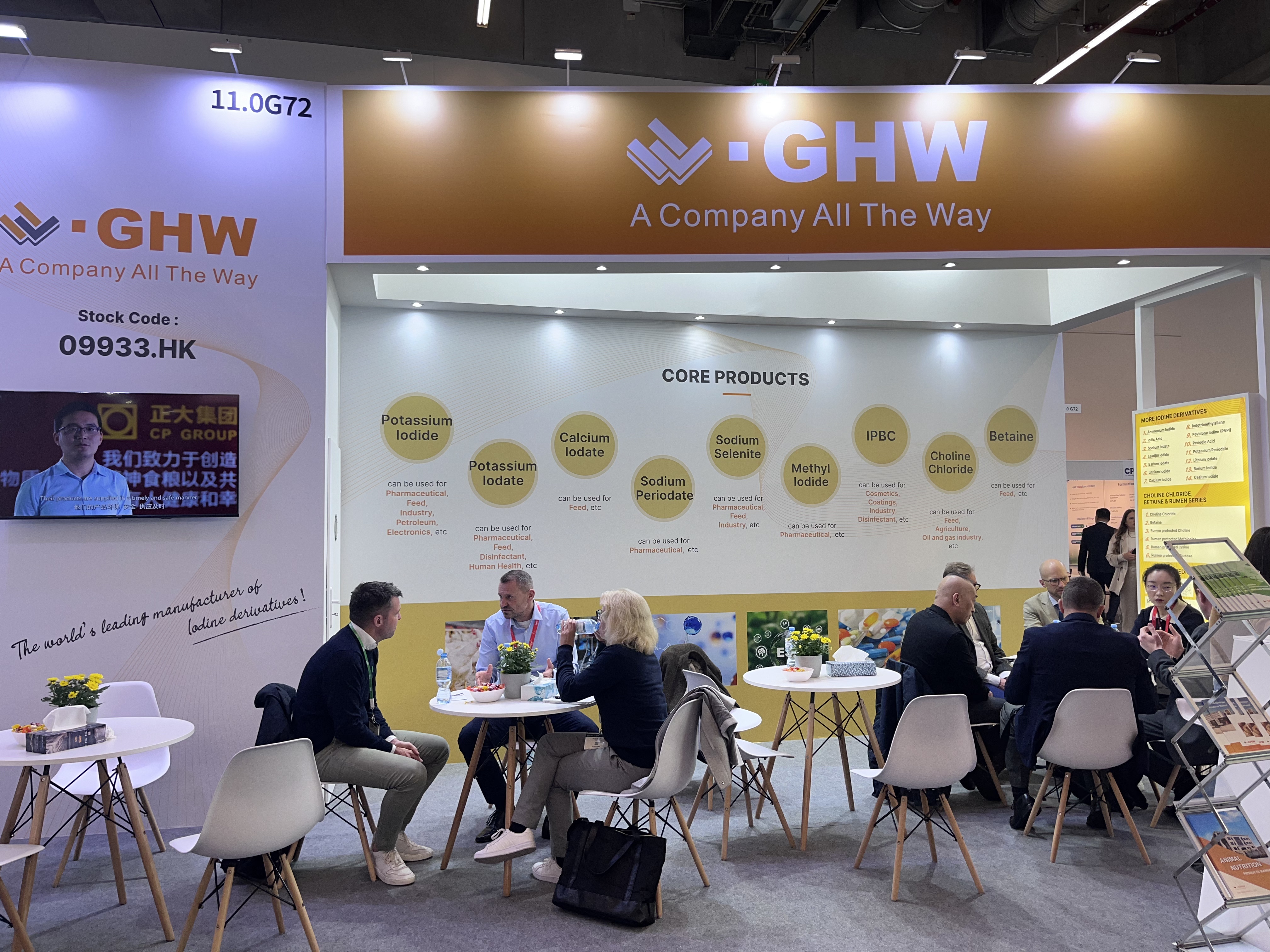 本次法兰克福之行,由 GHW International 集团董事长尹燕滨先生、执行董事庄朝晖先生亲自带队,南京总部碘衍生物系列及配套产品、甲胺产业系列、大健康产品业务团队成员携我司部分核心产品惊艳亮相。