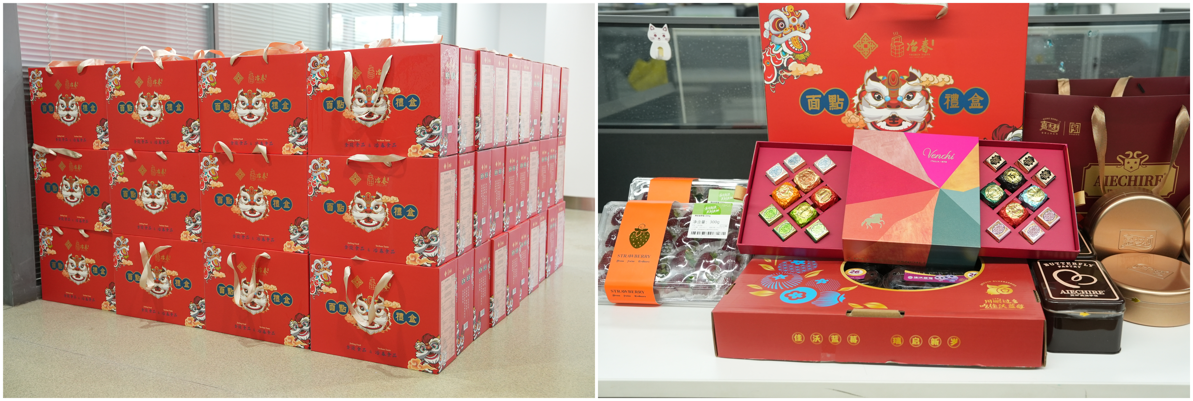 此次新春福利经过公司多轮筛选、精心搭配,涵盖巧克力礼盒、精致面点、新鲜水果、美味零食等丰富品类,以品质与心意传递公司对员工的真切关怀与美好期许,犒劳大家一年来的辛勤耕耘与默默坚守。